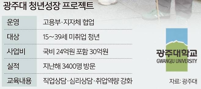광주시는 올해 청년성장 프로젝트에 국비 24억원을 포함해 총 사업비 30억원을 투입해 청년친화 거점공간인 청년일자리스테이션을 운영하고 있다. 광주대에서 위탁 운영하는 상무센터는 지난해 청년 구직자 3400여명이 방문해 직업상담, 심리상담, 취업역량 강화, 일상 활력 회복 등 180회가량의 프로그램에 참여했다. 이 같은 성과에 따라 상무센터 사업비는 지난해 9억6000만원에서 올해 10억원으로 늘었다.