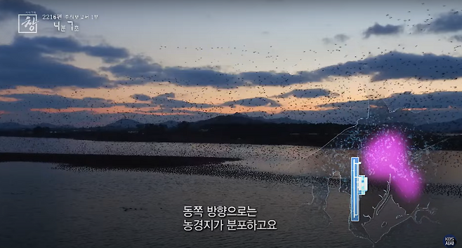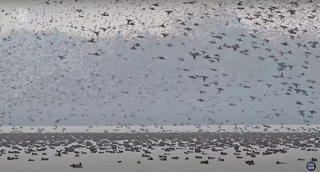 "가창오리의 특성 중 하나는 군무를 하는 특성이 있습니다. 그래서 한두 마리가 아니라 이렇게 수십만 마리가 대규모로 하나의 커다란 무리를 지어서 이동을 하고 휴식처랑 먹이터를 해 질 무렵이나 해 뜰 무렵에 이동하는 특성이 있습니다."
