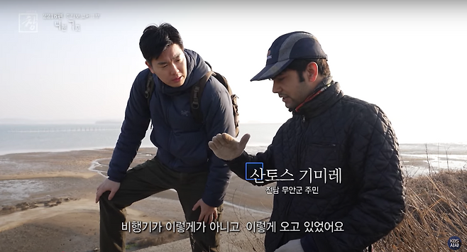 "비행기가 이렇게가 아니고 이렇게 오고 있었어요. (조금 서서 이렇게 왔다는 거예요?) 네."