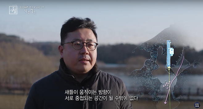 새들이 움직이는 방향이 서로 중첩되는 공간이 될 수밖에 없습니다."