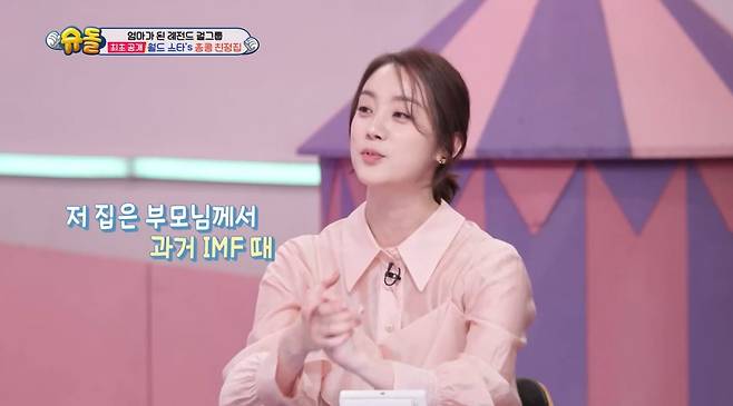 우혜림은 "부모님이 IMF 때, 집값이 떨어졌을 때 운 좋게 샀고 지금 10배가 올랐다고 한다"고 설명했다. 안영미는 "이런 얘기 들으면 배 아프더라"고 너스레를 떨어 웃음을 안겼다.