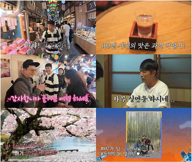 이날 '독박즈'는 교토 도시샤 대학에서 나와, 인근의 '니시키 시장'으로 향한다. 인공지능앱인 '챗GPT'가 알려준 시장을 찾은 이들은 "여기가 '100엔 사케'가 유명하다"며 설레어 한다. 잠시 후 이들은 '100엔 사케'와 안주를 파는 상점을 발견하고 장동민은 "가격도 저렴한데 잔도 크네~"라며 먹텐션을 끌어올린다. 김준호 역시 "와규에 고베규까지 있다! 없는 게 없네~"라며 입을 떡 벌린다. 오는 7월 김지민과의 결혼을 앞두고 다이어트 중인 김준호가 급 훙분해 '먹식이 모드'를 켜자, 김대희는 "이따가 저녁 먹을 거니까 여기서는 제발 간단히~"라며 그를 단속한다.