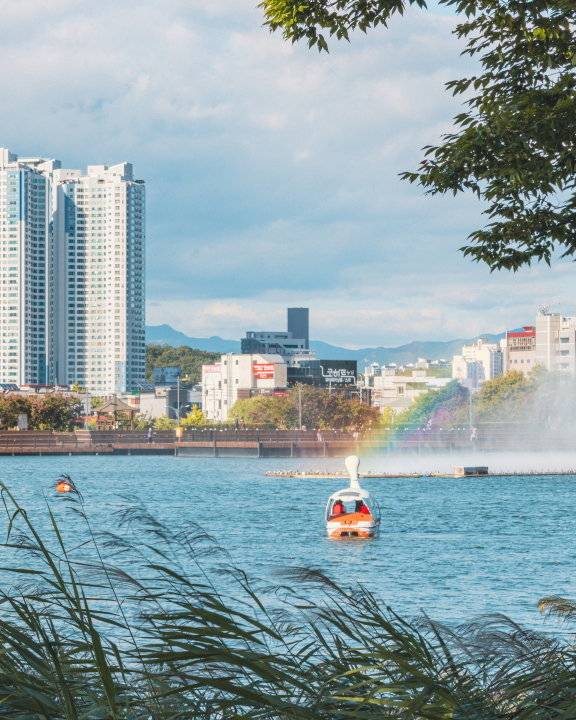 수성구의 가장 큰 자랑거리는 역시 자연이다. 수변을 산책하며 분수 쇼와 야경을 한 번에 즐길 수 있는 유원지가 조성돼 있을 만큼 천혜의 자연을 자랑한다. 수성못 둘레가 2㎞나 되는 터라 바늘꽃, 연꽃, 갈대 등이 어우러진 수변 데크 로드와 울창한 왕벚나무, 버드나무 가로수 길이 끊임없이 펼쳐져 몽환적 분위기를 연출한다. 밤에는 물 위에 비친 조명이 물감을 풀어놓은 듯 아름답게 반짝인다. 하루 4회 영상 음악 분수가 가동돼 볼거리가 풍족하다는 점도 마음을 끈다. 수성못유원지 공영주차장에서 무료 주차가 가능한 것도 굿.
