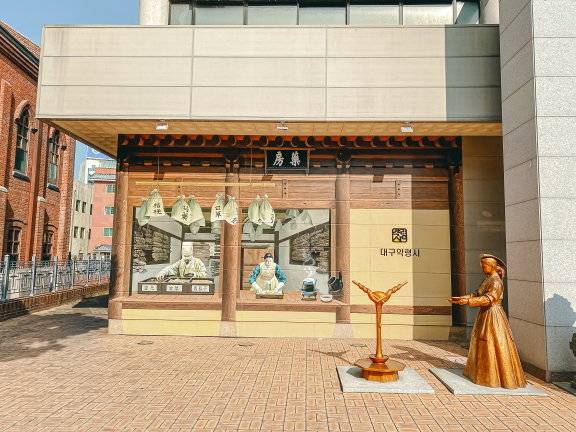 청라언덕을 비롯해 선교사가 묵던 주택, 3·1만세운동길, 서양식 건축물 계산성당, 시인 이상화의 고택과 국채보상운동의 선구자 서상돈의 고택, 한의약박물관, 토종 맛집이 몰린 진골목, 김광석 다시그리기길까지, 현대 건축과는 사뭇 다른 예스러운 분위기가 난다.