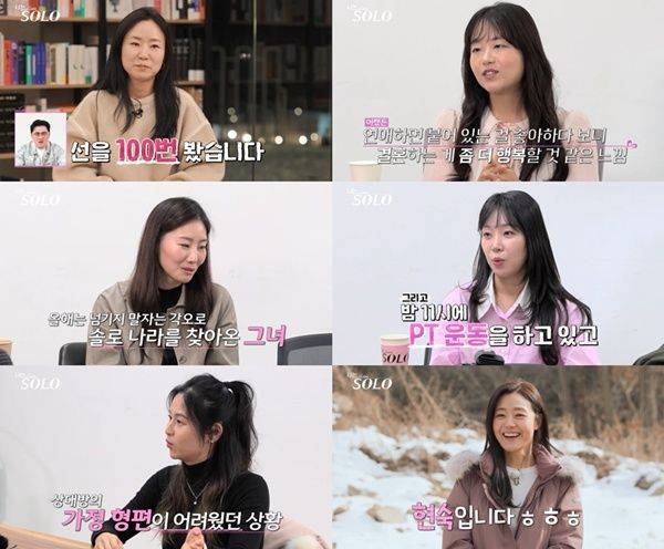 순자는 예술의 전당에서 독주회까지 연 유명 첼리스트로, "내성적이고 수줍음이 많아서 소개팅은 잘 안됐다. 엄마가 올해는 절대 넘기지 말라고 해서"라고 '솔로나라'를 찾은 절박한 이유를 전했다. 영자는 미국에서 학사, 석사를 마친 후 한국에 들어와 일을 하며 밤 11시에도 PT를 받을 정도로 '열정녀'임을 밝혔고, "과거 집안의 반대로 (남자친구와) 헤어졌다. 이제는 나이고 직업이고 가릴 때인지 싶다. 자녀가 없다면 돌싱도 괜찮다"고 말했다.