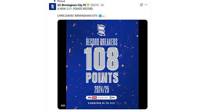 ▲ 잉글랜드 프로축구 한 시즌 최다 승점 신기록 수립 소식을 전한 버밍엄