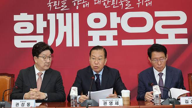 ▲ 국민의힘 권영세 비상대책위원장이 1일 국회에서 열린 비상대책위원회의에서 발언하고 있다.