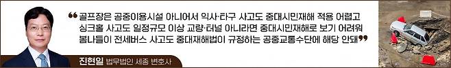 최근 동반자가 친 공에 골프장 이용객이 맞아 사망한 사건에서 검찰은 ‘중대시민재해는 공중이용시설의 설계, 설치, 관리상의 결함이 원인이 되어 이용자가 사망하여야 하는데, 동반자가 친 공에 맞아 사망한 것에 불과하므로 범죄성립이 되지 않는다’는 취지로 중대재해처벌법위반에 대해 '혐의없음' 처분을 하였다. 반면에 동반자와 골프장 캐디는 다른 죄명으로 기소되었다(2025. 4. 3.자 한국경제 등).