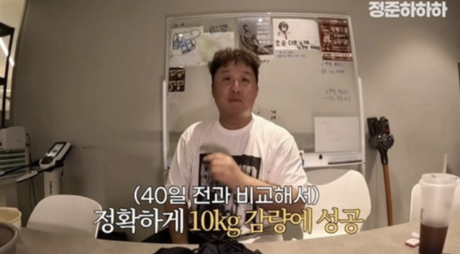 29일 공개된 유튜브 채널 '정준하하하' 영상에서 정준하는 '무한도전' 20주년을 기념해 40일간 20kg 감량에 도전한 결과를 공개했다. 그는 "40일 만에 정확하게 10kg을 감량했다"며, "체지방이 9kg 넘게 빠졌고, 근육량은 5kg 이상 늘었다"고 밝혔다.