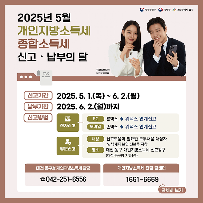 [대전24시] 동구, 종합소득세‧개인지방소득세 ‘원스톱 신고창구’ 운영...납세자 맞춤형 지원