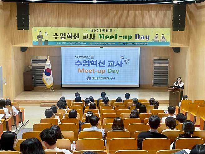 대전시교육청은 30일 대전교육정보원에서 2025학년도 중등수업혁신사례연구대회 참가 교사 및 수업혁신에 관심 있는 중등교원 75명을 대상으로 교사의 자발적인 수업 연구 노력을 지원하고 우수 수업혁신 사례를 확산하기 위한 '수업 혁신 교사 Meet-up Day'를 개최했다고 밝혔다.