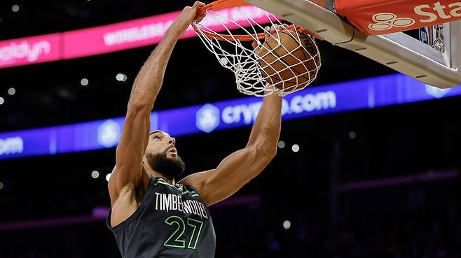 고베르는 27점 24리바운드를 올리며 레이커스 골밑을 맹폭했습니다.