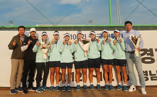 <사진> 지난해 경남 전국체전에서 우승한 NH농협은행 소프트테니스 선수단. 사진 김종석