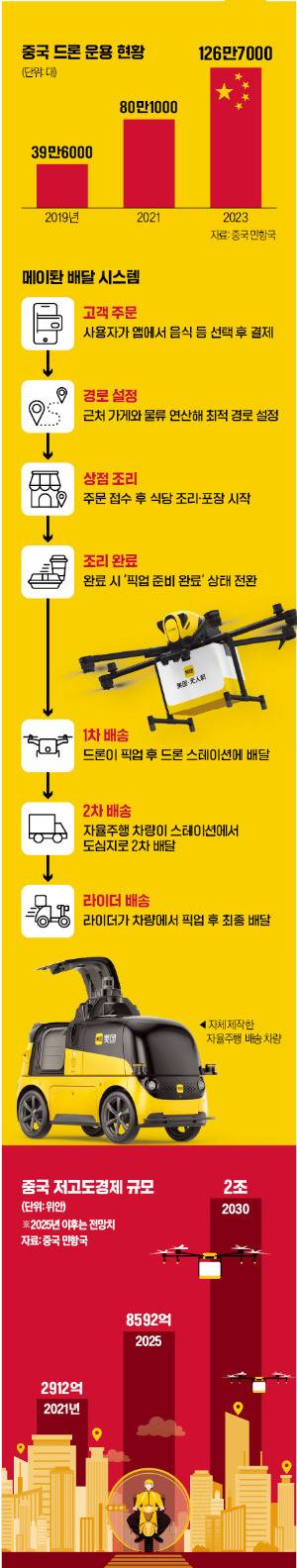 메이퇀의 행보는 중국 정부가 육성 중인 저고도 경제 전략과 맞닿아 있다. 중국은 지난해를 ‘저고도 경제의 원년’으로 선포하고 드론을 중심으로 한 도심항공교통(UAM) 기술, 항공물류, 관광·의료 응급 서비스 등 다양한 산업 분야와의 접목을 추진하고 있다. 선전, 광저우, 청두 등 주요 도시에 ‘저고도 비행 자유화 시범구’도 지정했다.