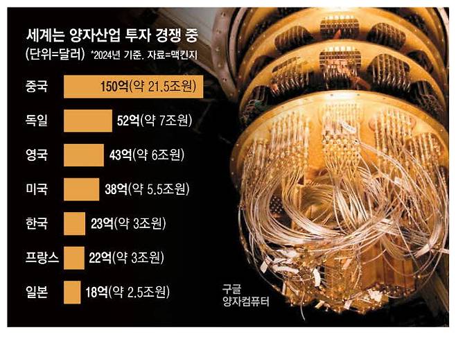 현재 한국은 해외 주요국에 비해 양자컴퓨터 기술과 투자가 크게 뒤처진다. 맥킨지 보고서에 따르면 중국 정부는 2023년 이전까지 양자 분야에 투자하겠다고 밝힌 금액만 153억달러(약 21조원)다. 반면 한국 정부가 같은 기간 양자 분야에 투자한 건 1억달러(약 1400억원) 미만이다.