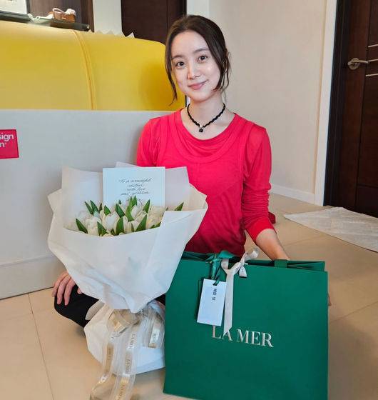 1일 우혜림은 자신의 소셜 계정에 여러 장의 사진을 공개했다. 스킨 케어로 유명한 L 브랜드의 로고가 보이는 쇼핑백에, 커다란 꽃다발과 편지를 공개한 우혜림. 우혜림은 작은 얼굴에 긴 목을 드러내는 카디건과 목걸이 그리고 머리띠를 코디한 채 기쁜 미소를 지었다.