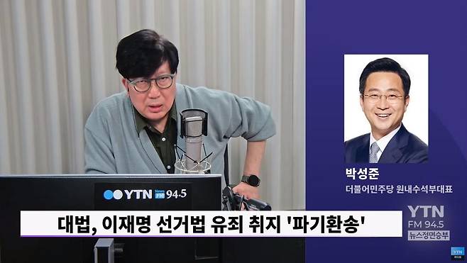 ◆박성준: 지금 왜 그러냐면 지금 대통령 선거가 진행되는 과정이고 또 정당에서 대통령 경선을 통해서 유력한 대선 후보 특히 민주당 같은 경우는 당원과 국민 여론조사를 통해서 89.77%라고 하는 압도적인 지지를 받은 대선 후보에 대해서 특히 이재명 후보 같은 경우는 윤석열 정권 들어서서 정치 검찰의 기획 수사라고 하는 부분이 드러나지 않았습니까? 이것을 바로잡아야 할 대법원이 오히려 사법의 정치화를 통해서 명백한 대선 개입을 하고 있는 것은 민주주의 원리라고 할 수 있는 주권 재민의 원리에 부합하지 않고 오히려 대법원이 지배하려고 하는 법관에 의한 통치를 이루려고 하는 시도다 이렇게 보고 있습니다.