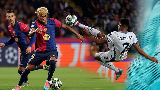 후반 19분 인터 밀란 뒴프리스가 제공권을 장악하며 멀티 골을 기록하자, 바르셀로나도 1분 뒤 코너킥 상황에서 하피냐가 기가 막힌 왼발 중거리슛으로 응수했습니다.