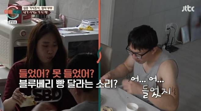 밥을 차려준 남편에게 아내는 손 하나 까딱하지 않으며, 사소한 거 하나까지 모든 것을 시켰다. 이를 보던 서장훈은 "너무 시키는 거 아니냐"라고 한소리 했다. 이어 "본인은 일을 하고 있냐"라고 물었고, 아내는 "일을 안 한다"라고 답했다. 서장훈은 "아내가 일을 해서 남편이 집안일을 하는 건줄 알았는데 아니었다"라며 어이없어 했다. 결국 부부 모두 무직 상태였던 것.