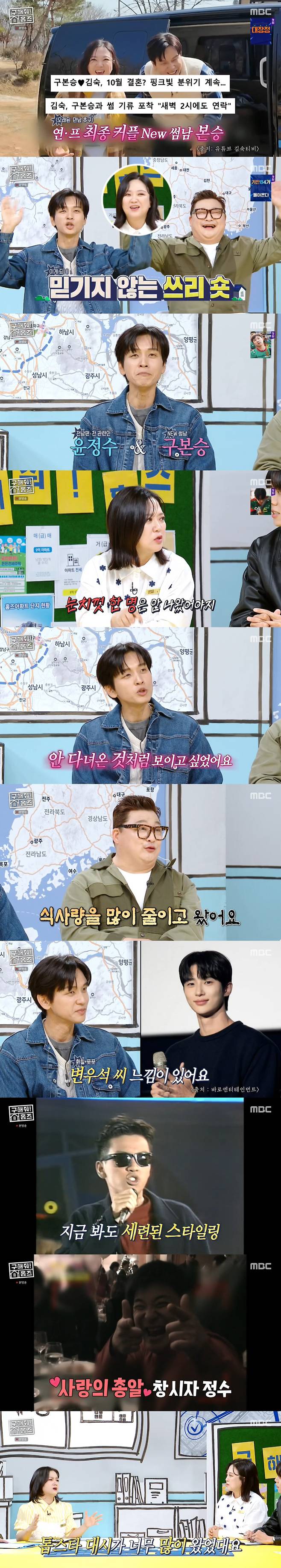 이날 스튜디오에 윤정수와 구본승이 함께 출연, 김숙은 "잘못된 거 아니냐. 눈치 껏 한 명은 안 나왔어야 하는 거 아니냐"며 당황했다.