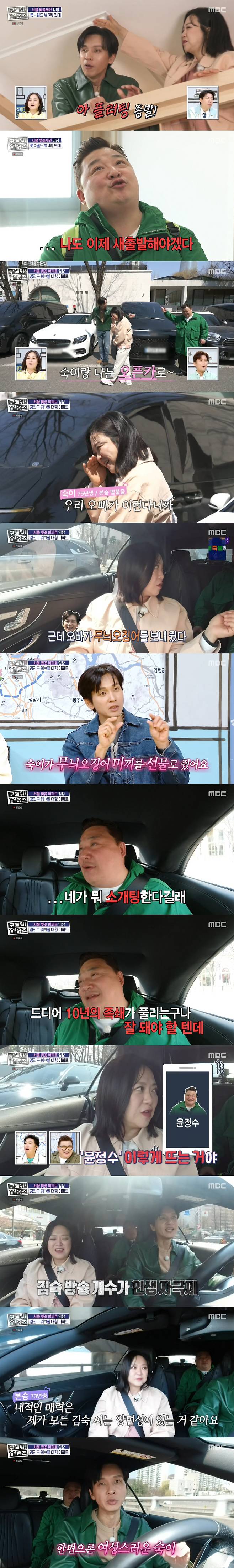 구본승은 김숙과 벚꽃 임장을 위해 오픈카를 준비했다. 김숙은 "우리 오빠가 이런다"며 웃었고, 윤정수는 떨떠름한 표정을 지었다. 오픈카 뒷자리에 얻어 타게 된 윤정수의 투덜거림에도 김숙과 구본승은 둘만의 벚꽃 드라이브를 즐겼다. 이를 지켜보던 박나래는 "너무 놀라운 게 원래 덕팀장님 운전대 남한테 안 맡긴다"며 놀랐다.