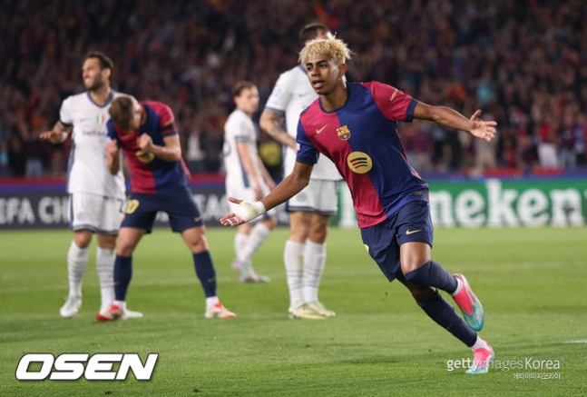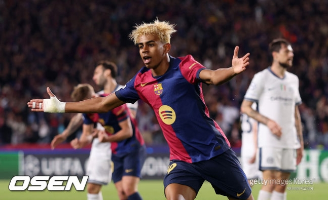 야말은 1일(한국시간) 스페인 바르셀로나 에스타디오 올림피코에서 열린 인터 밀란과의 2024-2025 유럽축구연맹(UEFA) 챔피언스리그(UCL) 준결승 1차전에 선발 출전해 전반 24분 추격골을 넣었다.