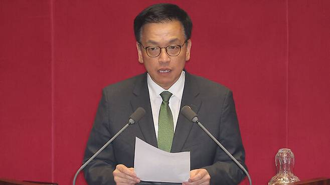 ▲ 본회의 추경안 표결 전 발언하는 최상목 부총리