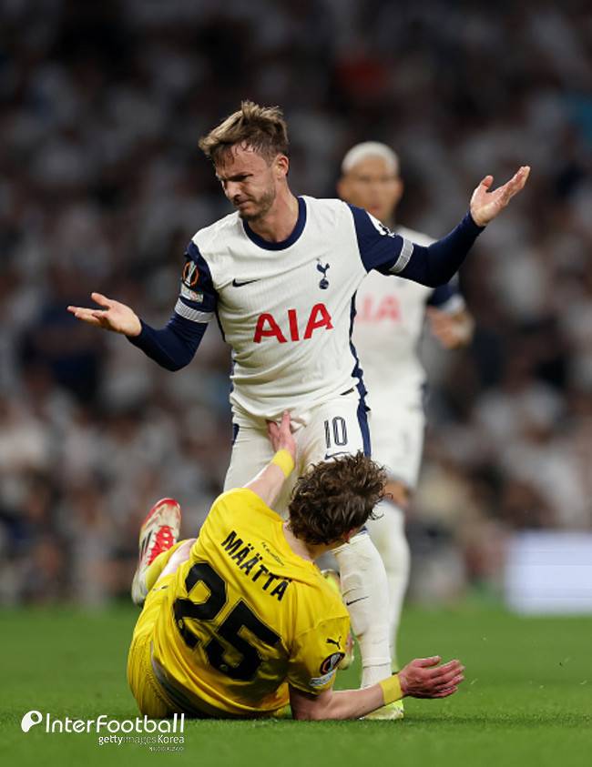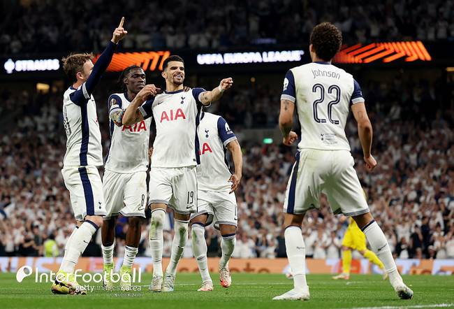 토트넘은 흐름을 탔다. 전반 38분 벤탄쿠르 환상 슈팅은 하이킨이 선방했다. 전반 42분 솔란케 슈팅은 막혔다. 전반 43분 히샬리송 슈팅은 득점으로 이어지지 않았다. 전반은 토트넘의 2-0 리드 속 종료됐다.