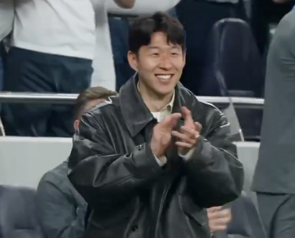[풋볼리스트] 김희준 기자= 부상으로 결장한 손흥민이 토트넘홋스퍼의 유럽축구연맹 유로파리그 결승행 가능성이 높아지자 환한 미소를 짓는 모습이 포착됐다.