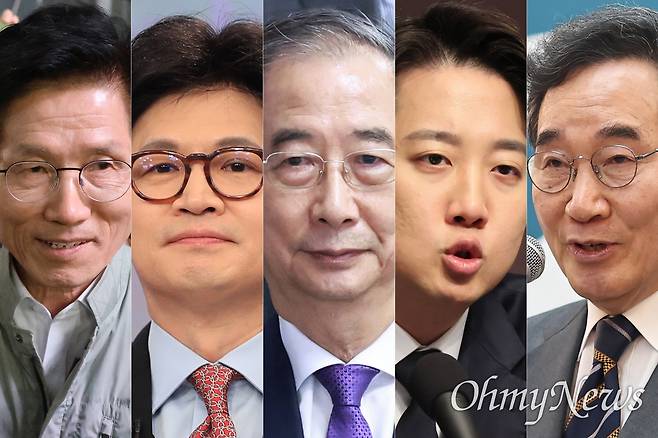 | ▲ '반 이재명 연합' 가능할까? 효과는 있을까? 왼쪽부터 김문수 국민의힘 대선 경선후보, 한동훈 국민의힘 대선 경선후보, 한덕수 전 국무총리, 이준석 개혁신당 대선후보, 이낙연 새미래민주당 상임고문. |