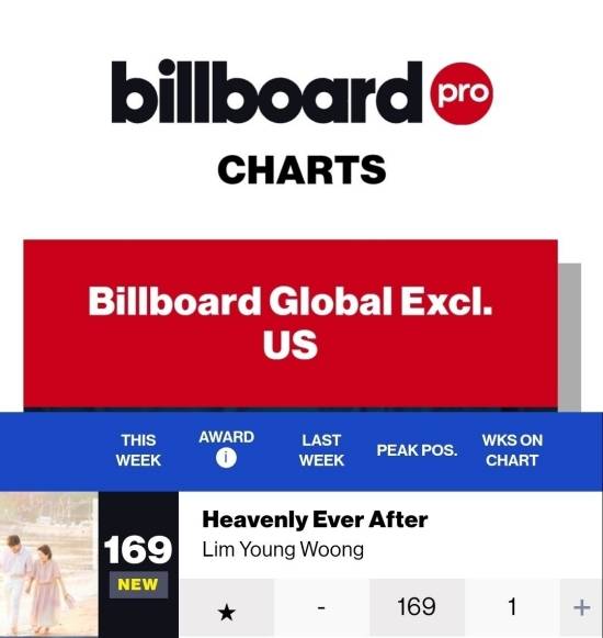 빌보드에 따르면, 임영웅이 지난 4월 14일 발표한 싱글 '천국보다 아름다운'(Heavenly Ever After)이 5월 3일 자 '글로벌(미국 제외)' 차트에 169위로 데뷔했다.