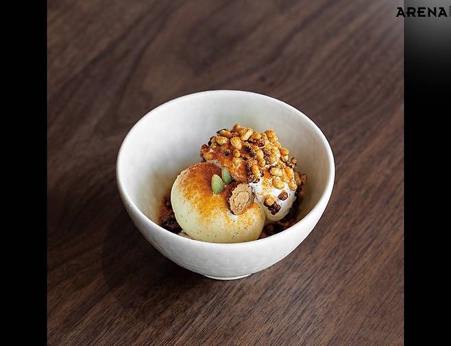 그럼에도 강민구 셰프는 여전히 성실하다. 3스타 수상 소식에 대한 소감을 물었을 때 그는 이렇게 답했다. “레스토랑을 열었을 때 3스타를 목표로 한 것은 아니었다. 좋은 요리를 만들고, 손님에게 의미 있는 경험을 선사하는 것, 그것이 전부였다.” 밍글스의 주 장르는 모던 한식이다. 정관 스님에게 직접 배운 방식으로 장을 담그고, 그걸 활용한 요리에 유러피언 터치를 가미한다. 시그너처 메뉴 ‘장 트리오’에서 그가 지향하는 요리를 엿볼 수 있다. 이름처럼 간장, 된장, 고추장 세 가지가 들어간다. 된장을 넣어 만든 크렘 브륄레에 아이스크림을 올리고, 간장에 졸인 피칸과 잡곡 튀밥, 고추장 파우더, 위스키 폼을 더해 완성한다. 단맛과 짠맛이 섞여 있지만 조화롭다. 호기심을 자극하는 텍스처와 길게 이어지는 매콤함도 일품이다. 이제껏 우리나라의 ‘장’은 강한 냄새와 향으로 경계 없는 미식에 접목하기 어려워 보였다. 그러나 밍글스는 거의 모든 요리에 장 소스를 활용한다. 셰프가 오래 고민하고 창의성을 발휘해 한국적 색채를 담고, 각각의 재료를 조화롭게 조합한 결과다. 그렇게 탄생한 요리는 한국을 넘어 세계를 감동시킨다.