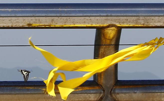 | ▲ 노란리본이 바닷바람에 나부끼고 있다. 노란리본이 바닷바람에 나부끼고 있다. |