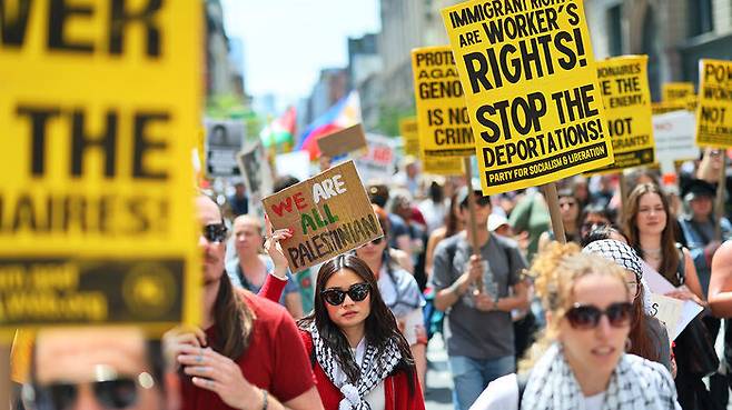 ▲ 1일(현지시간) 미국 뉴욕에서 열린 노동절 집회
