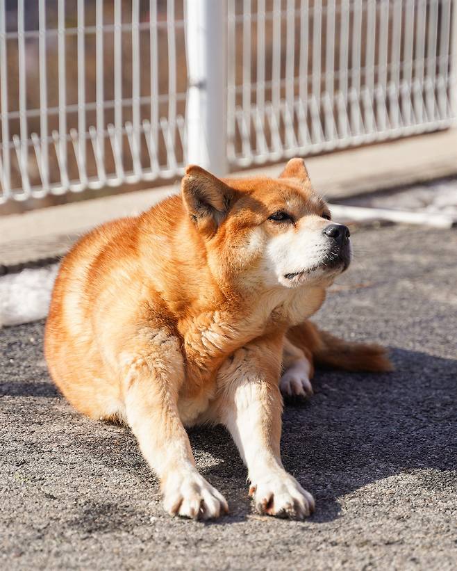 | ▲ 피곤한 진돗개 잘 활동할 땐 활동하고, 쉴 땐 잘 쉬는것이 가장 이상적인 반려견의 모습이다. |