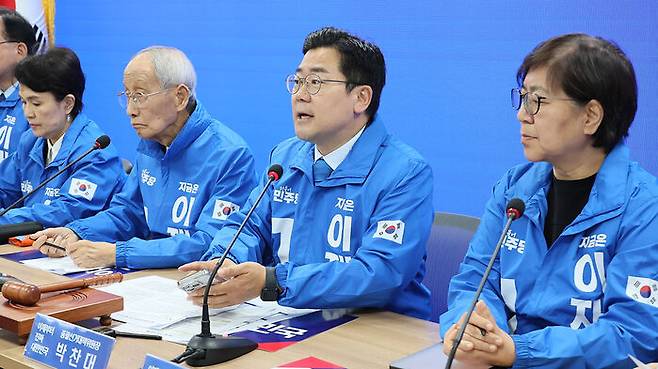 ▲ 더불어민주당 박찬대 총괄선대위원장이 2일 서울 여의도 중앙당사에서 열린 중앙선거대책위원회의에서 발언하고 있다.