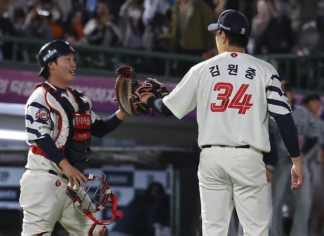 김원중은 2020시즌부터 마무리 역할을 맡아 당해 키움전에서 프로 데뷔 첫 세이브를 올렸다.