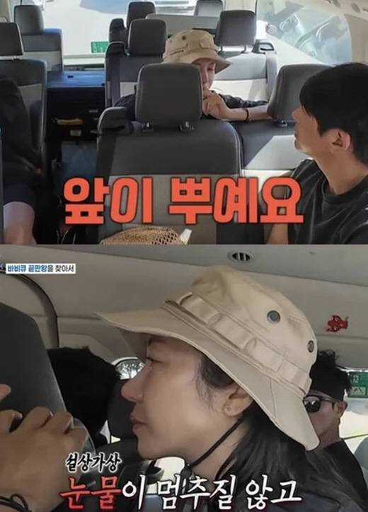 김옥빈은 차로 이동하던 중 손수건으로 눈을 비비며 힘들어했다. 류수영은 "뭐가 들어갔냐"라며 걱정했고 김옥빈은 "눈에 뭐가 들어간 게 아닌데 앞이 뿌옇다"고 쉴새 없는 눈물을 흘리며 고통을 호소했다. 김옥빈은 앞서 수심 20m 바닷속에서 해산물을 사냥했었다. 그는 "물안에서 다이빙 마스크 클리어를 계속 썼던 용액이 눈에 들어간 걸 수도 있다"라고 추측했다. 이에 김옥빈은 물로 눈을 씻어봤지만, 여전히 고통을 호소하며 앞이 제대로 보이지 않는다고 호소했다.