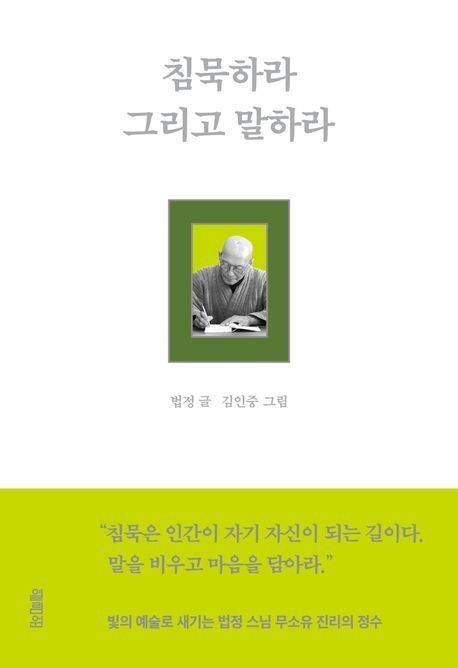 말의 과잉과 소음 속에서 힘겹게 살아가는 현대인들의 마음에 쉼을 선사할 법정스님의 글 일부를 엄선해 담아냈다. 책에서 말하는 침묵은 단순히 말수를 줄이는 차원을 넘어 "인간이 자기 자신이 되는 길"을 의미한다. 법정스님은 침묵을 통해 말의 무게를 되새길 때 비로소 타인과의 관계에서 진실에 다다를 수 있다고 조언한다. 침묵에 필요한 자세는 단순함이다. 비움과 절제를 통해 진정한 풍요를 이룰 수 있다고 법정스님은 강조한다. (법정 지음 | 열림원)