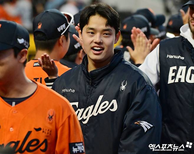 문동주는 이번 시즌 한화의 선발진에 대해 "정말 단합이 잘 된다. 그리고 서로 피드백을 하고, 좋은 얘기를 많이 나누다 보니까 자연스럽게 경기 결과도 좋아지는 것 같다"면서 "국내 최고의 선발진이고, 나만 더 잘한다면 더 좋아질 거라고 생각하기 때문에 최선을 다해 누가 되지 않도록 해야겠다는 생각을 하고 있다"고 웃었다.