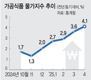 지난 2023년 12월(4.2%) 이후 16개월 만에 최대 상승 폭이다. 가공식품 상승률은 지난해 11월 1.3%까지 낮아졌지만, 12·3 비상계엄 사태가 촉발한 고환율이 시차를 두고 수입 원자재 가격 등에 영향을 주면서 오름세를 키우고 있다.