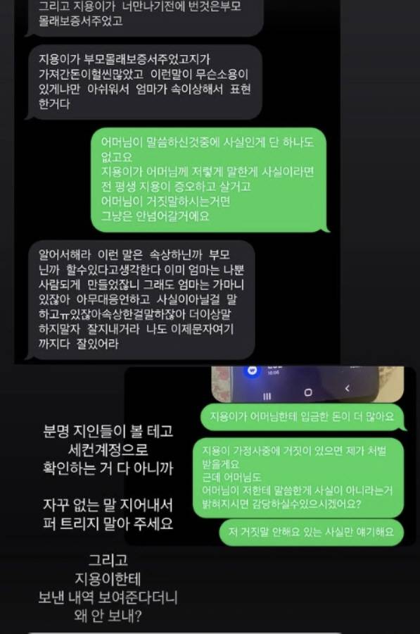 이에 이씨는 “지용이가 어머님한테 입금한 돈이 더 많다. 지용이 가정사 중 거짓이 있으면 제가 처벌 받겠다. 그런데 어머님이 저한테 말씀한 게 사실이 아니라는 거 밝혀지시면 감당하실 수 있으시겠나”라고 강한 어조로 말했다. 이에 대한 A씨의 답은 없었다.
