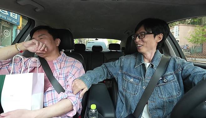 마침내 집 앞에 도착한 뒤, 문이 열리자 집주인의 모습이 공개됐고, 이에 임원희가 어떤 반응을 보인 것인지 유재석은 잇몸 미소가 만개한 모습이다.