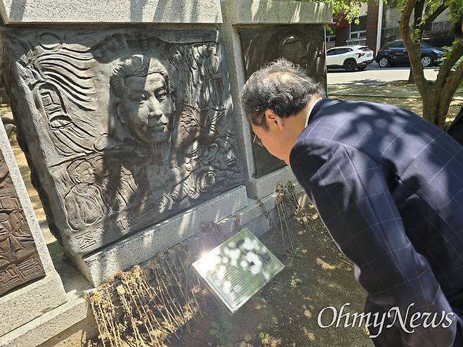| ▲ 이낙연 새미래민주당 상임대표가 2일 오후 경북대 여정남공원을 찾아 인혁당사건으로 희생된 여정남 열사를 추모했다. |