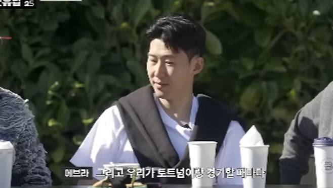 박지성은 손흥민이 등장하자마자 패션을 지적하며 "안 춥냐"고 물었다. 손흥민은 "이젠 영국 사람이 다 됐다"며 웃어넘겼다. 하지만 박지성은 "패션 때문에 그러는 거 아니냐"고 다시 한번 잔소리를 날리며 웃음을 유도했다.