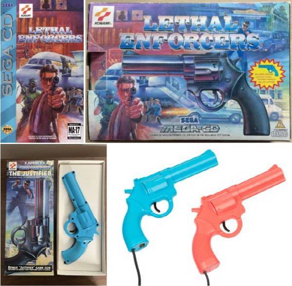 검떠: 만약 메가드라이브류, 즉 세가 쪽 건콘 게임을 즐기셨던 분이라면 1992년도에 등장한 '리쎌 엔포서스'를 기억하실 겁니다. 실사풍의 이미지를 캡처해서 스프라이트로 만들었죠. 슈퍼패미콤과 메가CD로 출시되었고, The Justifier 로 알려진 리볼버 모양의 라이트 건이 포함되어 있었습니다.