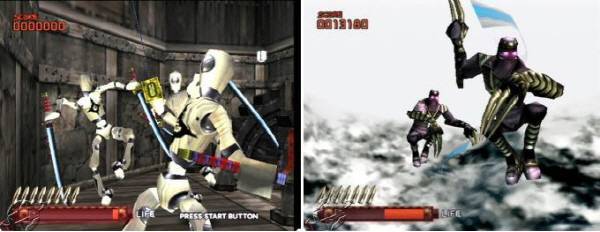 검떠: '닌자어썰트'는 건콘2(Gun Controller)를 이용하여 즐기는 게임으로 2명의 플레이어가 화면 분할없이 동시에 한 화면으로 게임을 즐길 수 있는 게 특징입니다. 또한 '닌자어썰트'는 가정용 게임답게 아케이드(오락실)에 없었던 스토리 모드 등 다양한 모드와 4개의 미니 게임들이 추가가 되어 있어서 나름대로 가치가 있다고 할 수 있습니다.