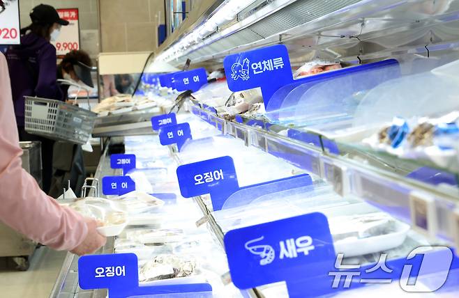 4월에는 가공식품과 외식, 축산물, 수산물 등 먹거리 가격이 고공행진을 했다. 축산물(4.8%)과 수산물(6.4%)은 큰 상승폭을 나타냈다. 사진은 이날 서울 한 마트에서 소비자들이 수산물을 고른는 모습. 2025.5.2/뉴스1