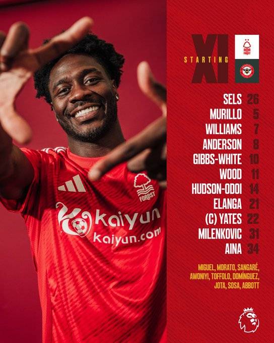 이날 홈팀 노팅엄 포레스트는 4-2-3-1 포메이션을 들고 나왔다. 마츠 셀스가 골문을 지킨 가운데, 올라 아이나, 니콜라 밀렌코비치, 무릴로, 니코 윌리엄스가 포백을 구성했다. 3선에는 라이언 예이츠와 루이스 오브라이언이 나란히 배치돼 수비형 미드필더 역할을 맡았다. 2선 공격진으로는 안토니 엘랑가, 모건 깁스-화이트, 칼럼 허드슨-오도이가 출전해 공격을 이끌었고, 최전방 원톱으로는 크리스 우드가 설발 출전했다.