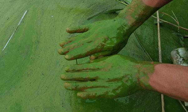 | ▲ 지난해 6월 오마이리버 금강탐사때 찍은 녹조. |